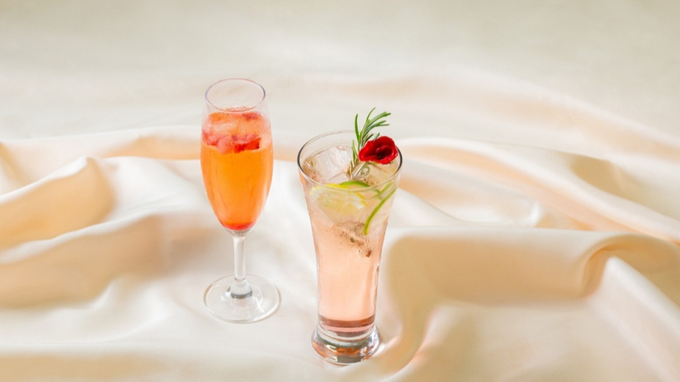 ローズシロップの甘い香りにレモン果汁の爽やかな酸味と炭酸を加えた上品で華やかなノンアルコールカクテルです。