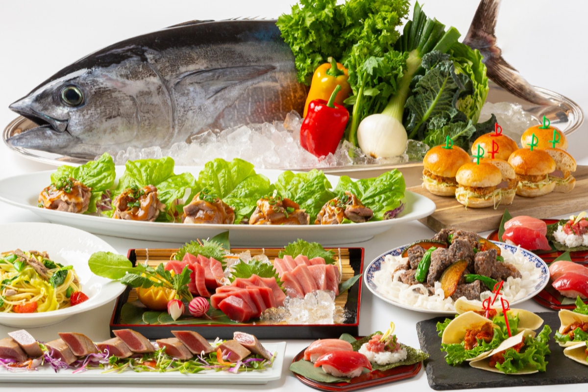 ライブキッチンでは「マグロのソテーレア仕立て」をご提供いたします。他にも「マグロのお刺身」や「マグロのお寿司」、「マグロのコンフィと春野菜のパスタ」など多彩なマグロメニューをお愉しみください。
