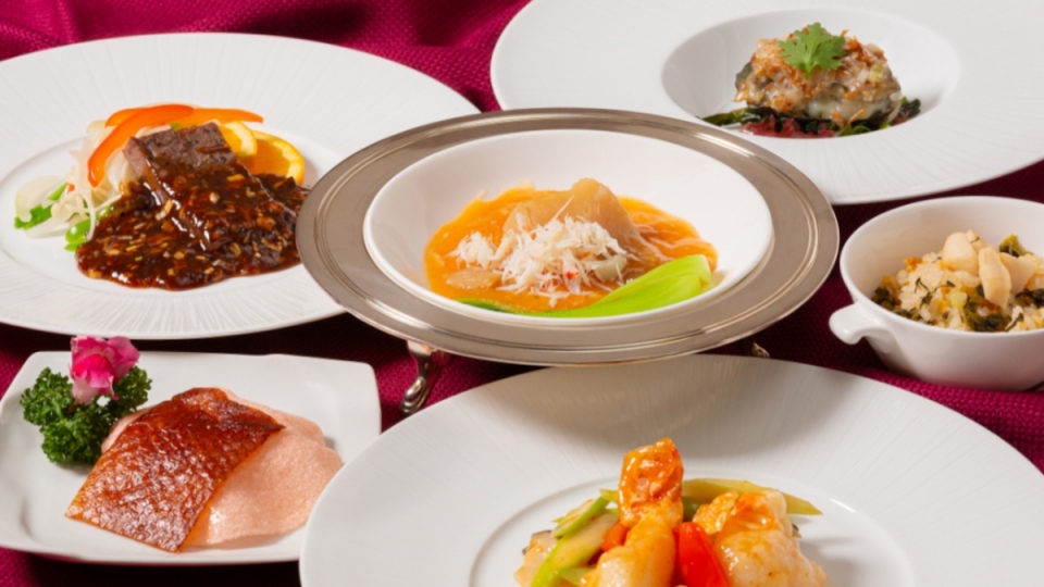 「ふかひれの姿、上海蟹味噌煮込み」や「あわびの姿蒸し XO醬ソース」、「長崎県産和牛の煎り焼き 黒豆ワインソース」などのお料理をご堪能いただけます。
